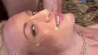 The horny blonde was at her peak sexual arousal, dressed in an extremely tight and revealing outfit that displayed every curve of her voluptuous body.Her blonde locks cascaded over her shoulders, complementing her flawless skin which had been perfectly bronzed from spending time under the sun.As the title suggests, this blonde was not only horny but also eager to satisfy her desires with a big cock that she could barely contain in her mouth.She knelt down before her man, unzipping his pants and pulling out his massive tool, already pulsating with excitement for the wild ride that lay ahead.With great enthusiasm, she took the huge cock into her mouth, using every ounce of skill and expertise she had to pleasure this alpha male.Her oral skills were impressive, deepthroating him and slurping loudly as her tongue swirled around his shaft, bringing him closer to climax with each stroke.He groaned in approval, his hands resting firmly on the back of her head, guiding her every move, feeding his hard cock deeper into her willing mouth.As he enjoyed the blowjob, she teasingly wrapped her lips around the head and bobbed her head up and down, making wet smacking noises that only intensified the arousal in both their minds.She then licked the underside of the shaft, savoring every ridge as she moved her head in a slow, sensual rhythm that heightened his sensitivity further.Having had enough oral pleasure, he pushed her onto the bed, spread her skinny legs apart and positioned himself at her entrance.He admired the beauty before him her shaved pussy glistening with excitement.Her blonde locks spread across the pillow as she eagerly awaited his thrusts, panting slightly in anticipation for the ride that was about to commence.As he entered her, his thick cock filled her up completely, their bodies becoming one as they merged in a frenzy of lust and passion.His movements were slow and deep, hitting all her pleasure spots, making her gasp with delight while her hips undulated in sync with his rhythm.She could feel the anticipation building within her, and her body craved for more.As the passion between them grew, they transitioned from a steady fuck to a wild, hardcore ride.Their bodies glistened with sweat as they grunted and groaned in pleasure, the slapping of their flesh echoing throughout the room.During this intense session, he held her by the waist, lifting her up and down on his big cock, each time impaling her deeper onto his shaft.As she reached the peak, her muscles tightened around him, clenching with fun and causing a sensation so pleasurable that it made his nuts twitch involuntarily.Finally, unable to contain any longer, he pulled out from her quivering pussy and shot his hot load all over her, splattering across her skinny body and blonde hair.She was in heaven as his warm cum dripped down her flesh, a testament to the pleasure they had both shared.They both laid there, breathing heavily, covered in each others fluids as they savored their intimate connection and basked in the afterglow of an unforgettable encounter.