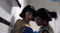In the dark, steamy bathroom, the two beautiful and horny lesbians lay on top of each other in a passionate embrace as their hands roamed over each others bodies.The first brunette girl spread her legs wide open while the other one fingered her wet pussy on the bathroom sink, the cool porcelain adding to her arousal.Her fingers were deep inside the girls stretched, juicy labia, gently caressing her clit as she moaned in ecstasy.The first girl was wearing a tight outfit, showcasing her curvy ass that made the other girl even more eager to touch and taste.The brunette babe spread herself wide open on the bathroom sink, her labia glistening with desire as the tiny girl eagerly dove in to lick and suck her swollen clit.Her tongue darted skillfully in and out, sending electric shocks of pleasure through her partners body.The first girl, a petite and smiling brunette, felt herself getting closer to an intense orgasm as the other girl continued to finger and tease her sensitive areas.The second girl, with a mischievous grin on her face, focused on the tiny, yet horny, brunettes clit, making it throb with each lingering lick.She alternated between touching and sucking her partners engorged clit and fingering her ass, creating an explosive combination that left them both wet and juicy.As they continued their passionate foreplay on the bathroom sink, both girls explored each others bodies their fingers dancing over firm ass cheeks and peeking underneath tiny outfits that were quickly becoming a distant memory.Their kisses grew deeper, more intense with each passing moment as they devoured one another in an insatiable hunger for pleasure.Their arousal growing with every touch and taste, both girls climaxed at the same time their orgasms colliding in a perfect symphony of wet, juicy, and tangled limbs.As the waves of their climax subsided, they lay there in each others arms, smiling contentedly as they caught their breath, both grateful for the intimate encounter that left them forever changed by the spread and fingered experience on the bathroom sink.